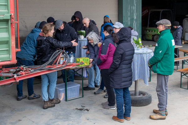 Am Samstag, 20. April haben wir zusammen mit rund 30 Kund:innen den Biohof Raffenberg in Fröndenberg-Ostbüren besucht. Von dem Bioland-Hof bekommen wir regelmäßig regionale Wurstspezialitäten, Bio-Fleisch, Apfelsaft und selbstgepresstes Sonnenblumenöl geliefert. Nach einer kurzen Begrüßung führte uns Christine Raffenberg über den Hof, den sie mit ihrem Mann Timo 2012 von ihren Eltern übernommen hat und nach den Richtlinien des Bioland-Verbands weiterführt.