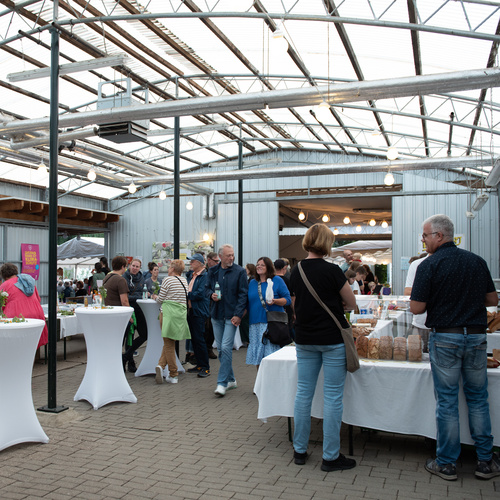 Ob Fleisch und Wurst vom Biohof Raffenberg, leckere Backwaren der Bäckereien Woeste und Backdat, Schokolade von fairafric, Apfel-Spezialitäten, Antipasti, Salate, Burger, Kaffee und Kuchen, verschiedenes Gemüse und vor allem Tomaten aus unserer Gärtnerei, ausgesuchte Weine und Käsesorten - es gab an den Ständen unserer regionalen Erzeuger:innen und Lieferant:innen viel zu entdecken und zu probieren. Untermalt wurde der Abend von der stimmungsvollen Musik der Band "Musikverein Schmidt" aus Dortmund.