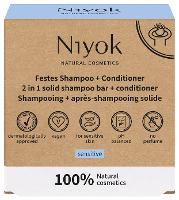 Ein festes Shampoo ohne Duftstoffe: Das feste 2 in 1 Shampoo von Niyok besitzt dank der speziellen Formulierung eine Conditioner-Funktion, die die Haare besonders weich und kämmbar machen. Es spendet reichlich Feuchtigkeit und schenkt dem Haar natürliches Volumen. Mit einem pH-Wert von 5,5 ist es hautneutral und damit besonders sanft zu deiner Kopfhaut. Diese Sensitiv-Variante enthält kein Parfum und eignet sich deshalb besonders für empfindliche Kopfhaut. Die Hautverträglichkeit wurde dermatologisch bestätigt. Das Stück schäumt ergiebig und zerbricht nach der Anwendung nicht, da es nicht gepresst wurde. Niyok steht für vegane Naturkosmetik im minimalistischen Stil. Made in Germany. 100% plastikfrei. Zertifizierte Naturkosmetik.
