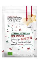 DINKELmehl Type 1050*¹ 67%, BUTTER*24%, Rübenzucker*, Weinsteinbackpulver (Säuerungsmittel: Monokaliumtartrat, Backtriebmittel: Natriumhydrogencarbonat, Maisstärke*), Meersalz, Vanille* 0,1%.¹Dinkel ist eine UrWEIZENart