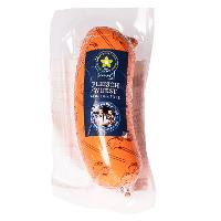 Putenfleisch* (50%), Sonnenblumenöl* (19%), Trinkwasser, Putenhaut*, Putenfett*, Steinsalz, Stabilisator: Trinatriumcitrat, Dextrose*, Zwiebel*, Tomatenpulver*, Gewürze (Pfeffer weiß, Paprika, Chilli, SELLERIE, Macis, Knoblauch)*