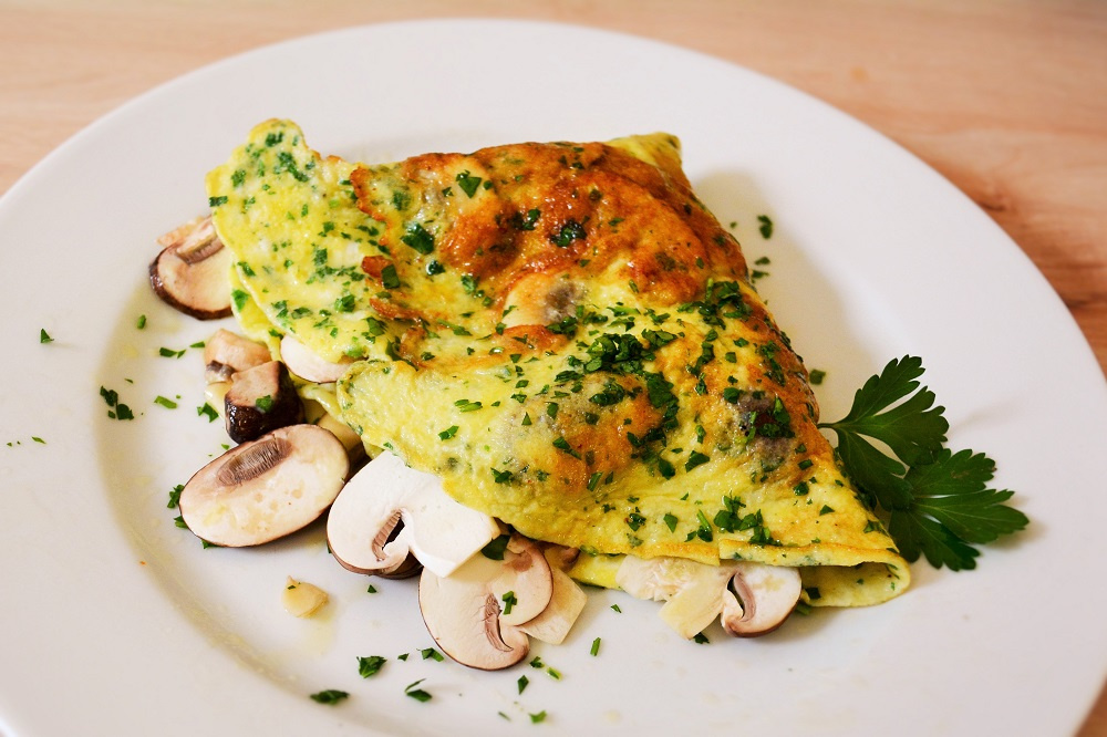 Die übrigen Champignons in der Mitte der Fritatta verteilen, halb zusammenklappen und mit der Petersilie bestreut servieren.