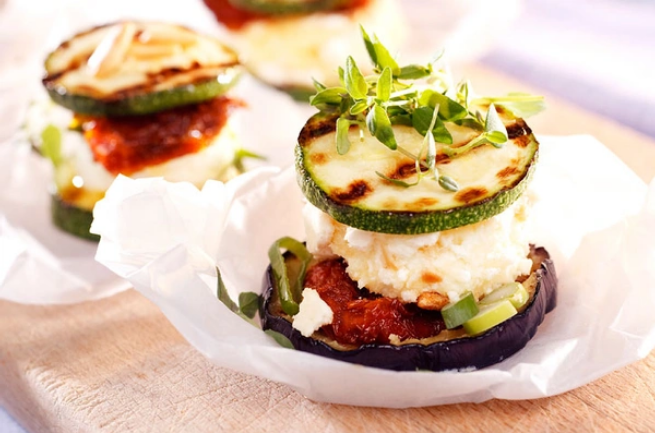 Diese leckeren Gemüse-Türmchen sehen nicht nur toll aus, sie schmecken auch hervorragend und sorgen als Grill-Beilage oder beim Buffet für ein optisches und geschmackliches Highlight.