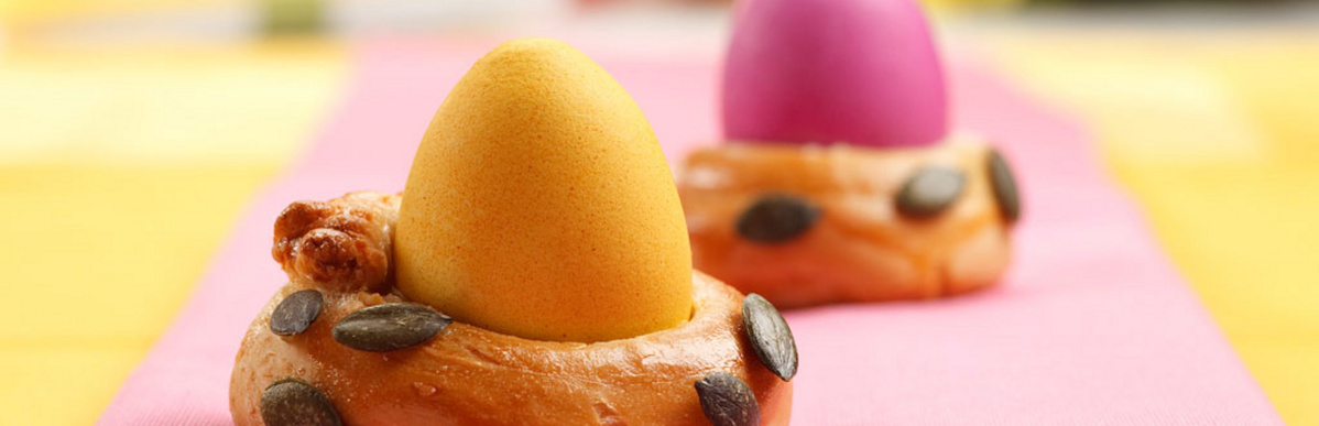 Diese Rollen zu kleinen, runden Nestern drehen, in die später ein gekochtes Ei gesetzt werden kann.
