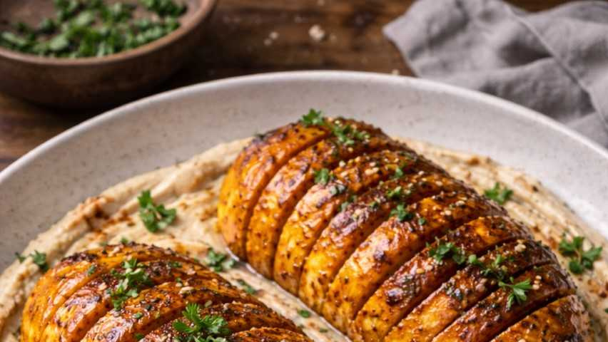 Ofenkürbis auf Zimt-Hummus